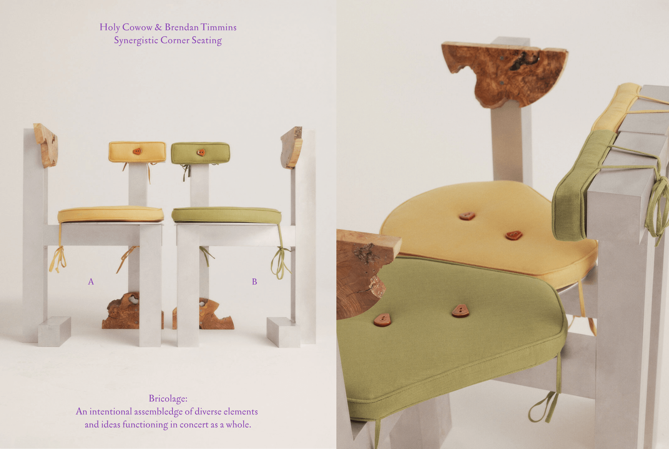 Based on a foundation Brendan has been exploring for years, Symmetrical Corner Seating A + B is the ultimate exercise in collaboration. An intentional combination of skills people, processes, and materiality, coming together to tell a story. or as Brendan calls it a "bricolage". A word I'm excited to continue using.