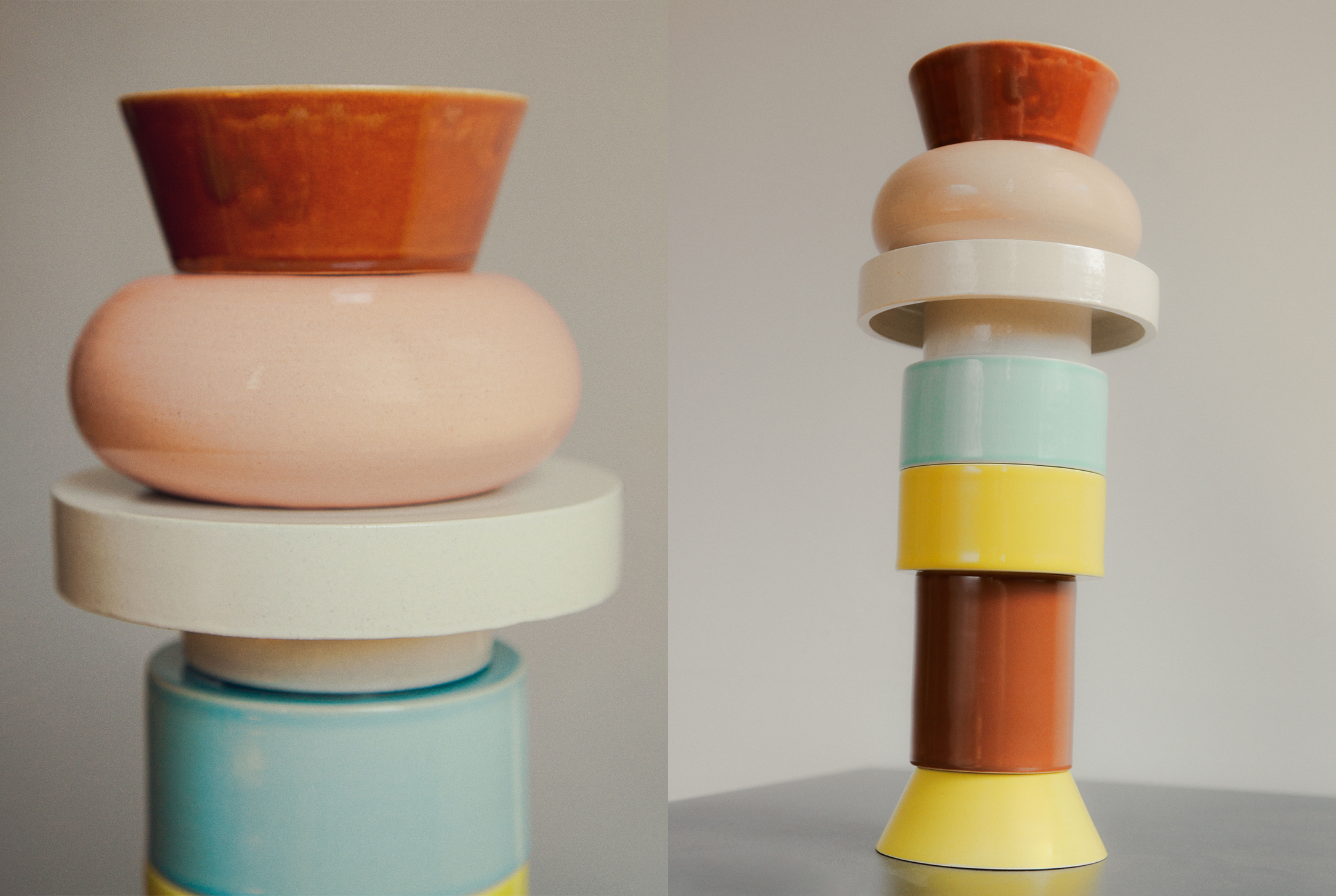 Torre, Italian for "tower", is an ongoing series of multi colored, stackable, ceramics.